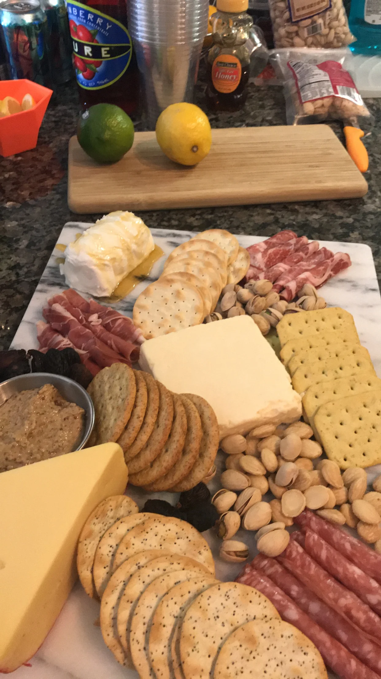 To have a well balanced cheese board, or charcuterie board to be fancy, it needs at least one thing from each of the main categories: soft cheese, semi-firm cheese, hard cheese, meat, nuts, bread or crackers, spreads and fruit. The last is hard for me to admit, because anyone that knows me knows I hate pretty much all things fruit, but I found a great substitute that is technically a fruit!